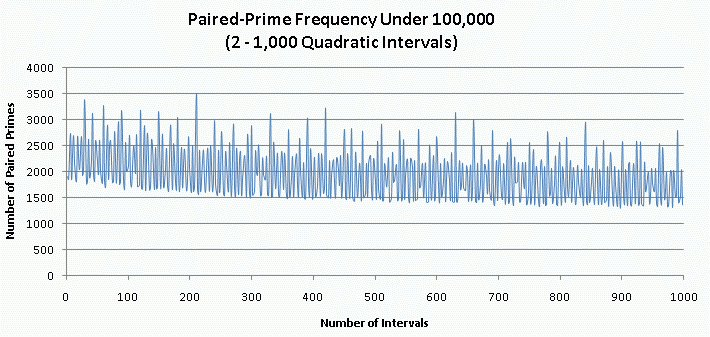 - The highest concentrations of paired primes do not occur for the lowest even quadratic interval - namely, 2. In fact, QI-2 ranks 221st out of the first 500 even intervals for paired-prime frequency. (QI-210 ranks highest among the first 500.)