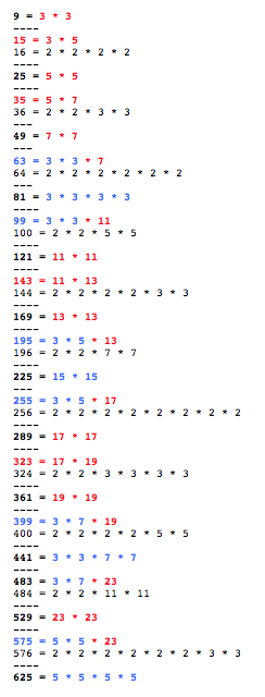 Therefore, when the next square (X + 1)2 is semiprime, its prime root is one prime factor of the previous square X2-1. [b]